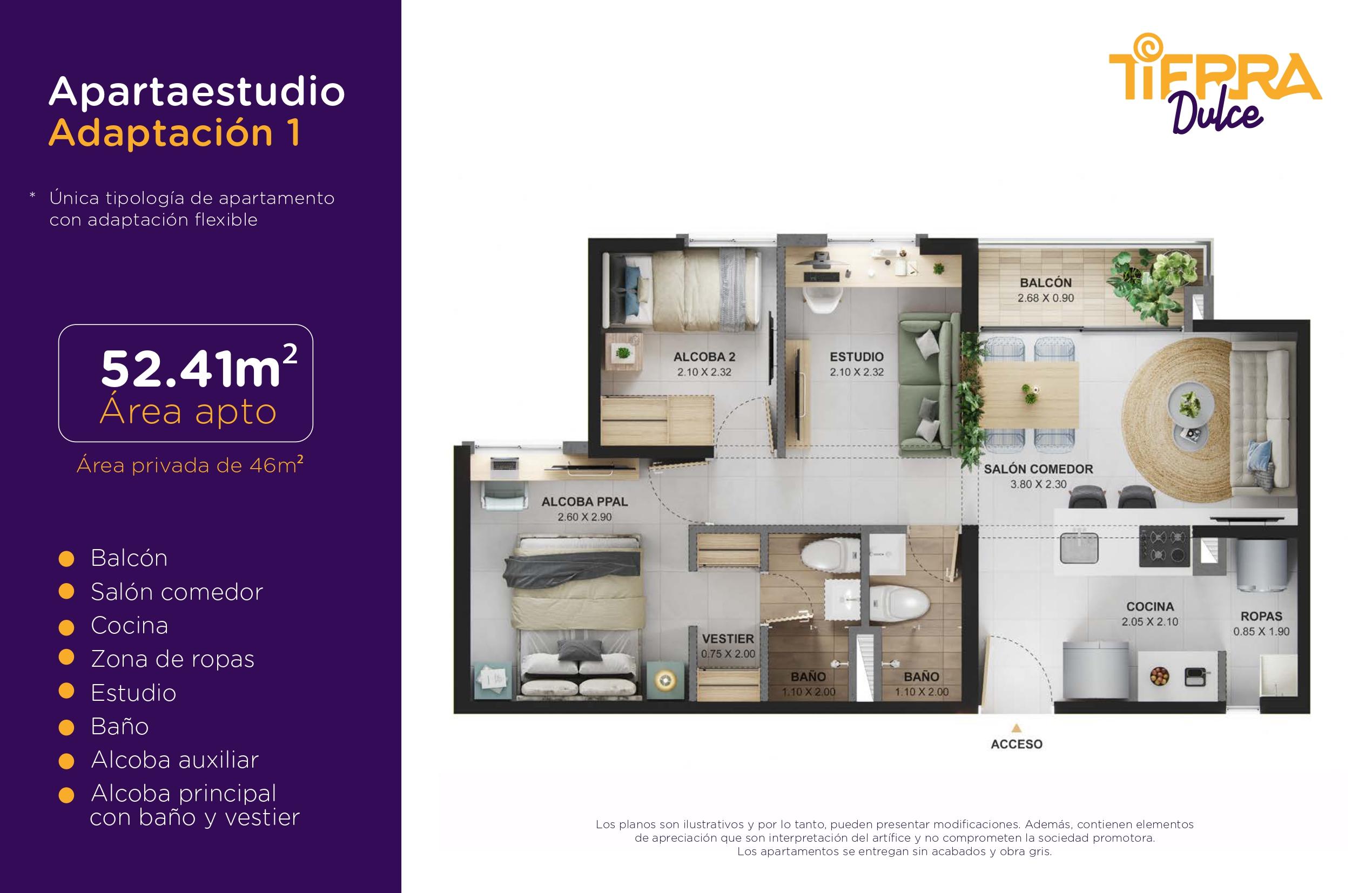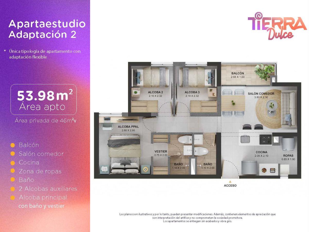 Las imágenes utilizadas son representaciones digitales del diseño y junto con los apartamentos y casas modelo pueden variar en la construcción final. El mobiliario, electrodomésticos, gasodomésticos, acabados y demás elementos que aparecen en las imágenes del apartamento o casa modelo son una representación a fin de ilustrar la utilización de los espacios y pueden diferir de lo entregado o no ser entregado según lo convenido en los contratos. Las áreas privadas y construidas podrán sufrir ajustes y quedarán finalmente determinadas en los contratos suscritos por las partes. Las zonas comunes serán entregadas por etapas según la programación de construcción.